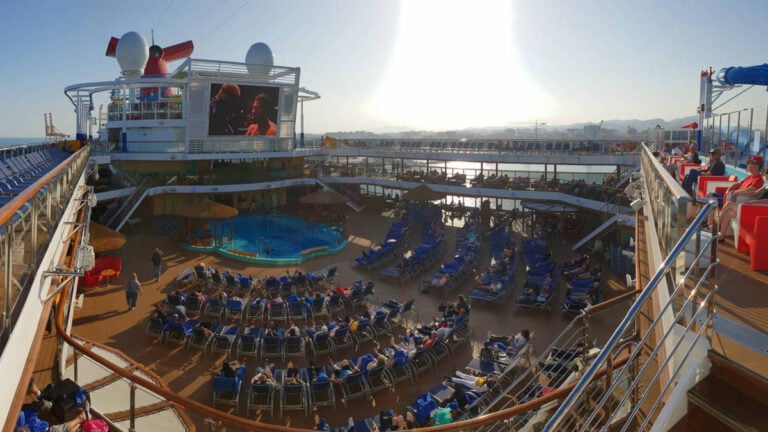 “We will be covering it on all the ships,” he said. “The ships that have the big screens on the Lido Deck will be showing the game, [and] there will be a tailgate party. The ships that don’t have that, they’ll show it on the big screen in the main theater.”